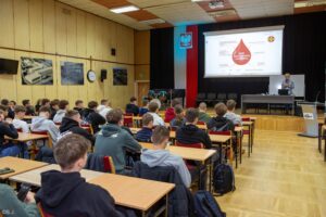Spotkanie zorganizował pan Arkadiusz Pyłypiw, który zaprasza na akcję oddawania krwi 19 listopada w auli szkolnej.